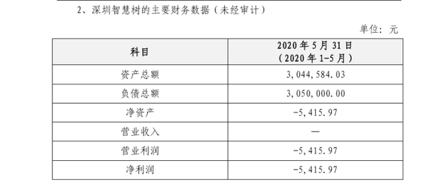 在公告中,天行体育平台官方网站-天行体育(中国)科技披露了深圳智慧树的主要财务数据(未经审计),如下图所示。